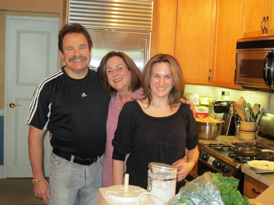Here we are with Nina’s family, making the latkes for Chanukah with Nina’s brother and his wife.