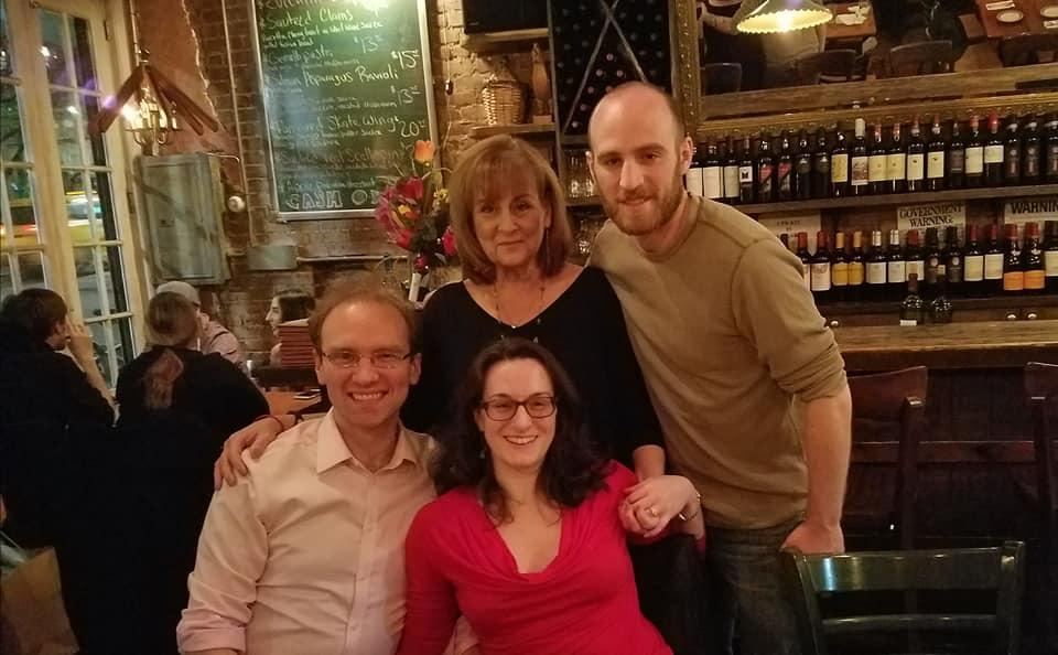 Here we are with Nina’s family, making the latkes for Chanukah with Nina’s brother and his wife.