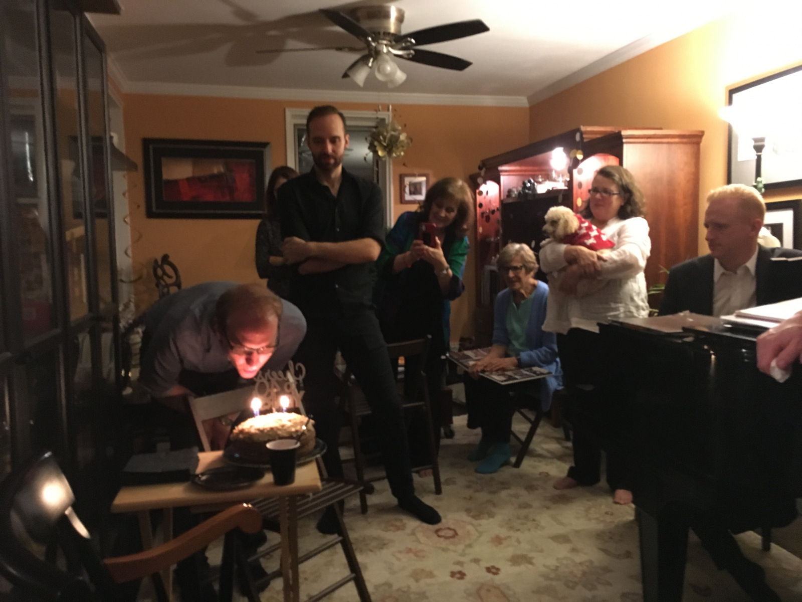 Galen blowing out the candles toward the end of his surprise birthday party!
