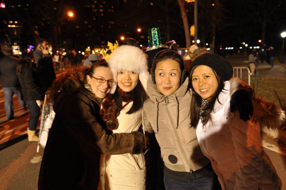 Here is Nina with some friends just after viewing New Year's Eve fireworks!